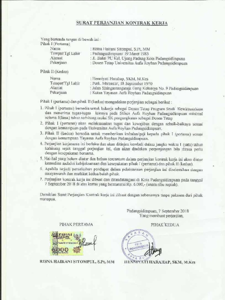 Contoh Surat Kontrak Kerja Dosen Contoh Surat