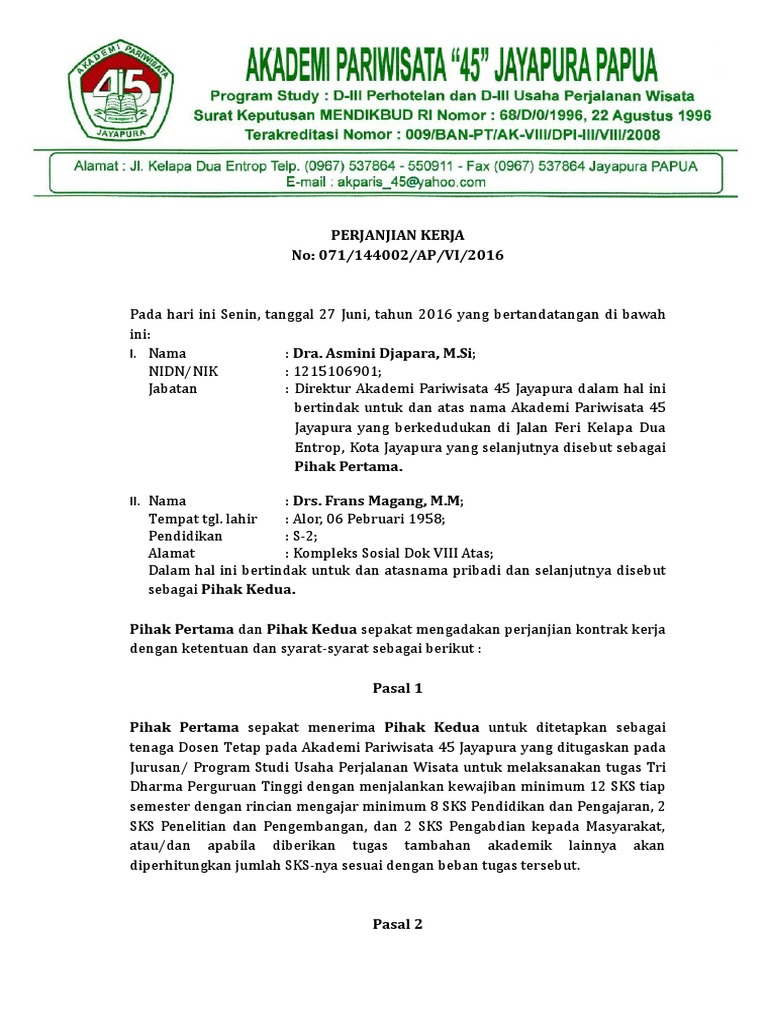 Surat Perjanjian Kerja Dosen Frans Magang 2 Pdf
